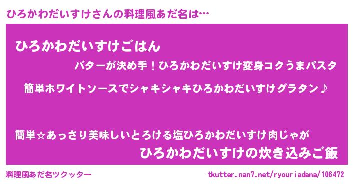 | ヘコむあだ名 | 『ひろぷりん』『ひろかわだいすけ(笑)』 |