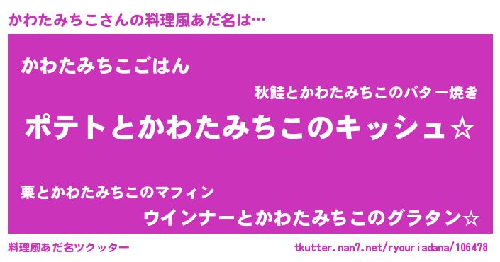 | ポケモン風あだ名 | 『ヒカワタミチコ』『カワキング』 |