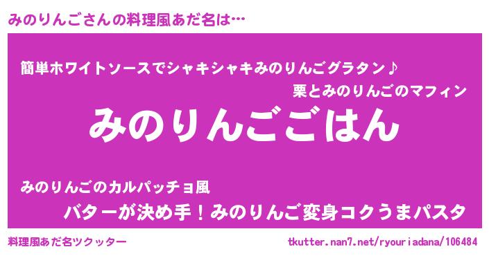 | ヒーロー風カッコイイあだ名 | 『暗黒騎士ミノ』『天空の使者みのりんご』 |