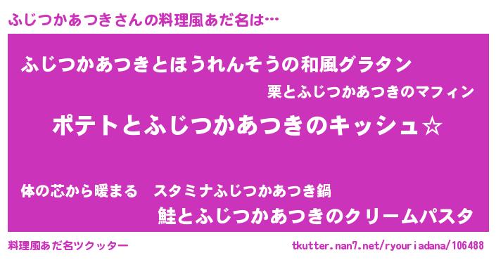 | 意味不明あだ名 | 『とにかく怪しいふじつかあつき』 |