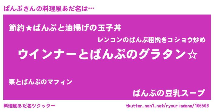 | 意味不明あだ名 | 『ばんぷフォーエバー』『ペロリンばんぷ』 |