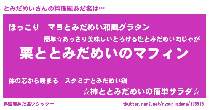 | ヘコむあだ名 | 『とみだめい(笑)』『なまこ酢』 |
