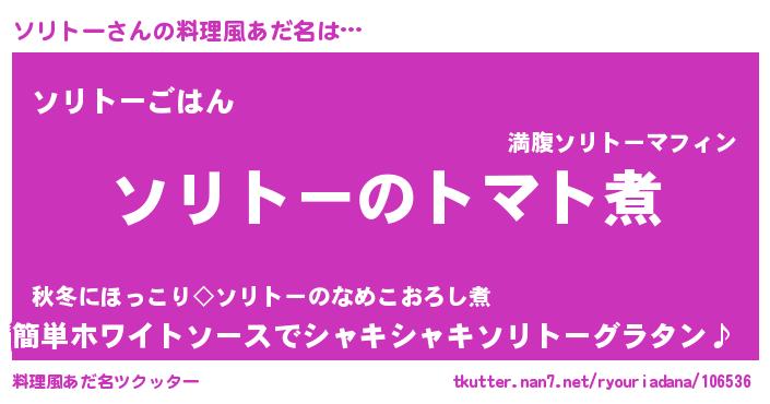 | 女子向けラノベタイトル風あだ名 | 『ソリトー夫妻のなれそめ』 |