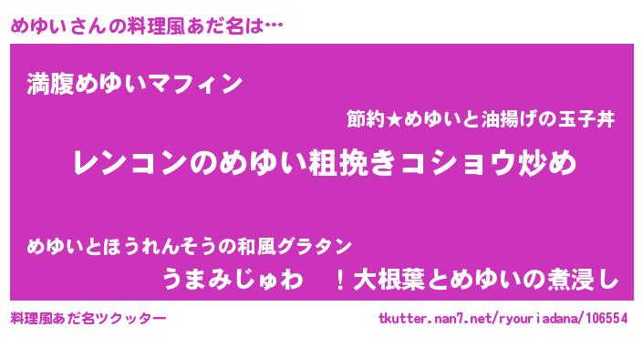 | 意味不明あだ名 | 『自称めゆい』『永久保存めゆい』 |