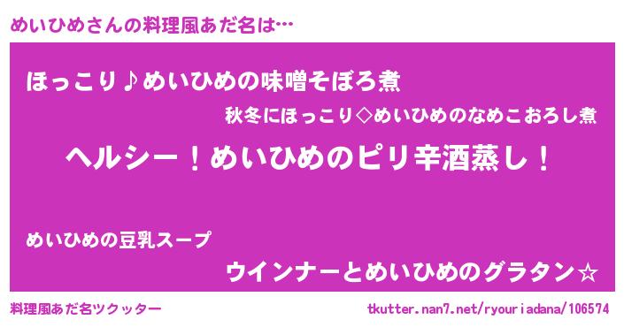 | ヘコむあだ名 | 『めいもー』『なまこ酢』『めいっぺ』 |