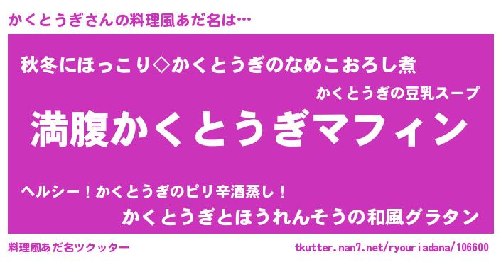 | 胡散臭い通販商品みたいなあだ名 | 『絶対に幸福をもたらす健康食品…その名も「かくとうぎ」』 |