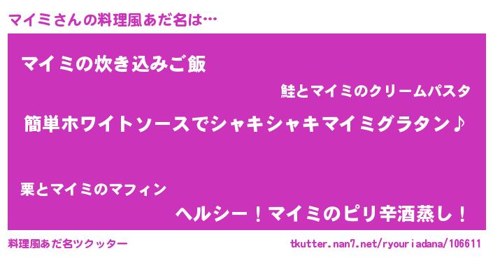 | 男性向けラノベタイトル風あだ名 | 『マイミの嫁は女の子じゃないと思った?』 |