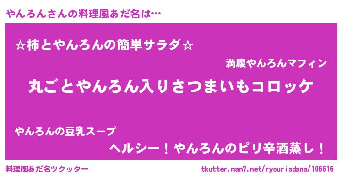 | ヘコむあだ名 | 『やんろん(笑)』『やんぷりん』 |