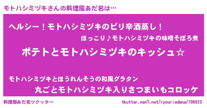 | 女子向けラノベタイトル風あだ名 | 『モトハシミヅキの卵を拾いまして』 |