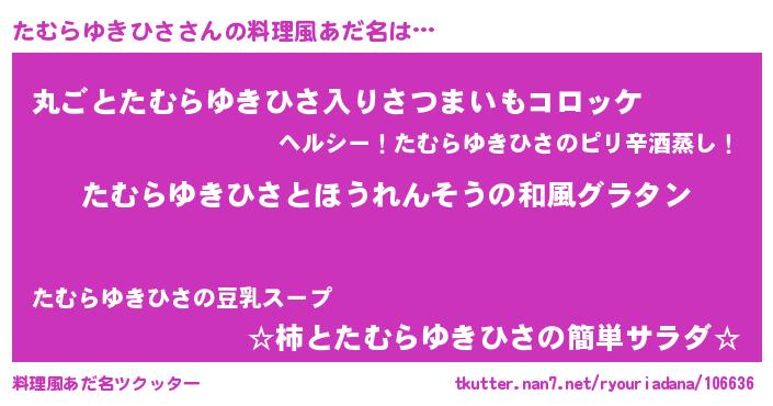 | 肩書あだ名 | 『たむらゆきひさ中将』 |