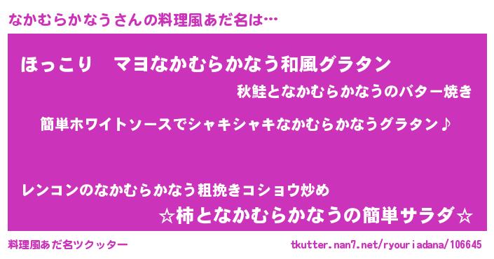 | 男性向けラノベタイトル風あだ名 | 『なかむらかなうの嫁は女の子じゃないと思った?』 |