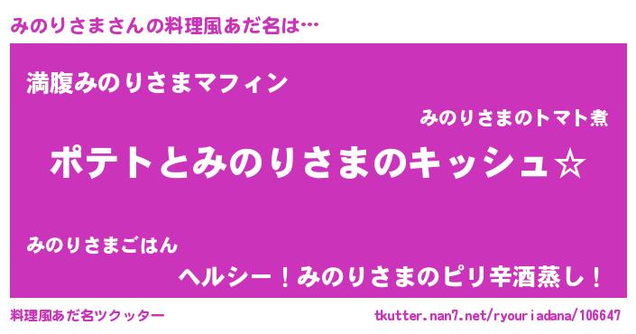 | 胡散臭い通販商品みたいなあだ名 | 『伝統あるサプリメント…その名も「みのりさま」』 |
