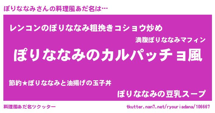 | ヘコむあだ名 | 『ぽりっ子』『ぽりななみ(遠い目)』 |