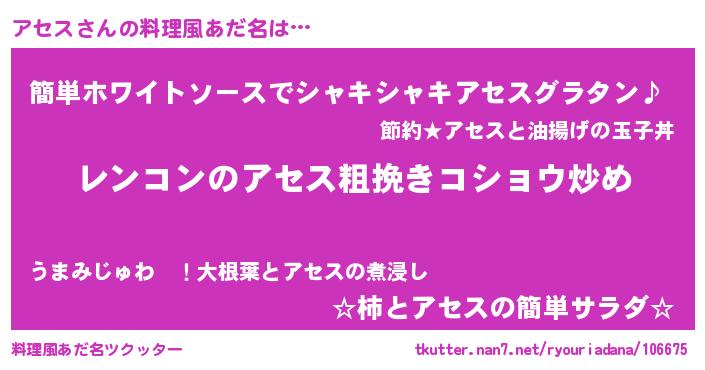 | ポケモン風あだ名 | 『アセセウス』『ヒアセス』 |