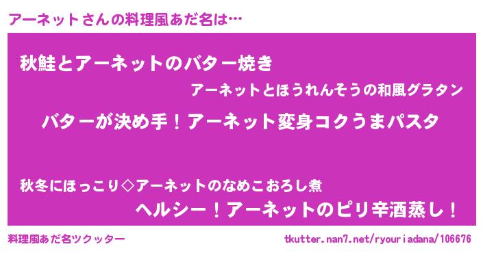 | ヘコむあだ名 | 『アーネット(苦笑)』『アーにゅー』 |