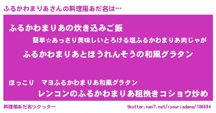 | ヘコむあだ名 | 『ふるかわまりあ(爆)』『ふるにー』 |