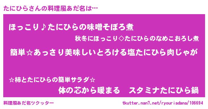 | 意味不明あだ名 | 『永久保存たにひら』『ペロリンたにひら』 |