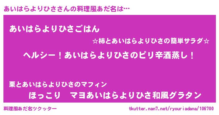| 男性向けラノベタイトル風あだ名 | 『Re:あいはらよりひさから始める異世界生活』 |