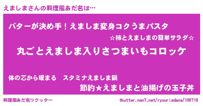 | 意味不明あだ名 | 『住所不定無職えましま(4歳)』 |