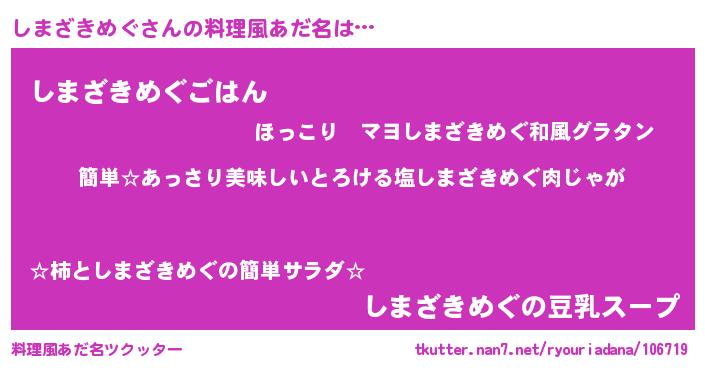 | 意味不明あだ名 | 『永久保存しまざきめぐ』 |