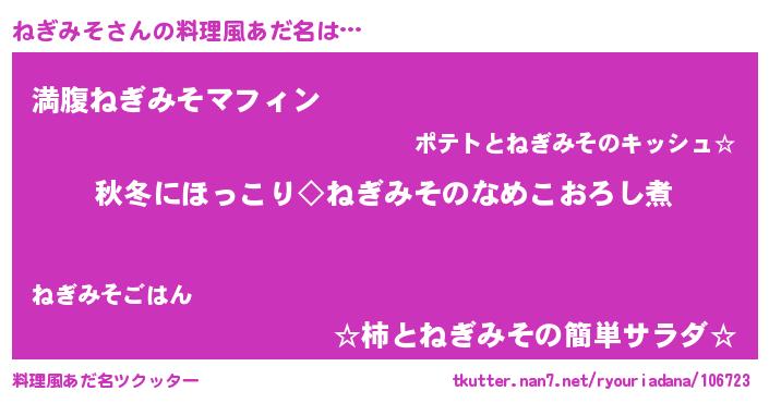 | 意味不明あだ名 | 『永久保存ねぎみそ』『ペロリンねぎみそ』 |