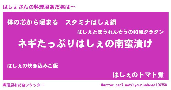 | 2回繰り返すあだ名 | 『はしはし』『ははしし』『ぶかぶか』 |