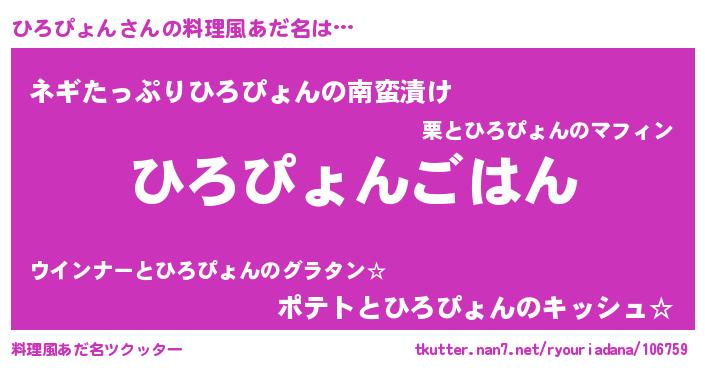 | ヘコむあだ名 | 『ひろにゅー』『ひろぷりん』 |