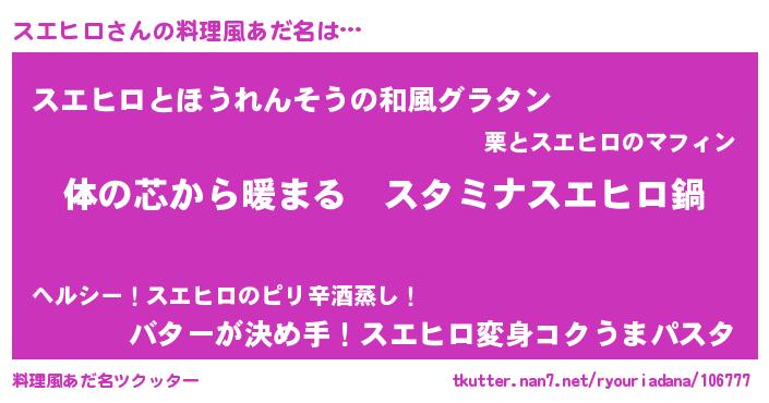 | 意味不明あだ名 | 『スエヒロフォーエバー』『自称スエヒロ』 |
