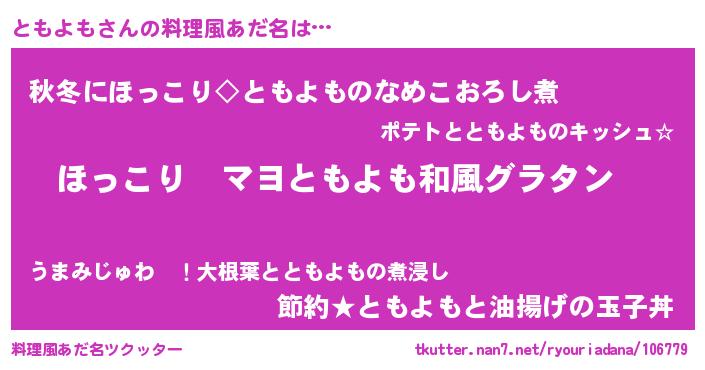 | 男性向けラノベタイトル風あだ名 | 『この素晴らしい世界にともよもを!』 |