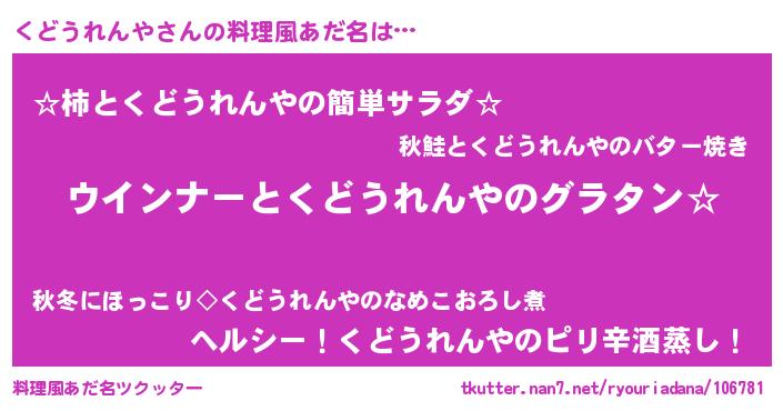 | ポケモン風あだ名 | 『クドウダネ』『メロクッド』 |
