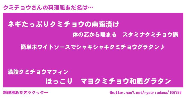 | ポケモン風あだ名 | 『ヒクミチョウ』『クミチュウ』 |