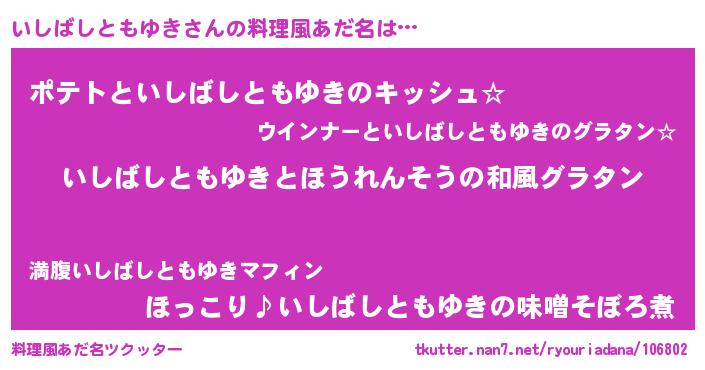 | 男性向けラノベタイトル風あだ名 | 『転生したらいしばしともゆきだった件』 |