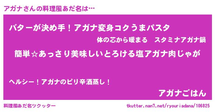 | ヘコむあだ名 | 『アガナ(震え声)』『なまこ酢』 |