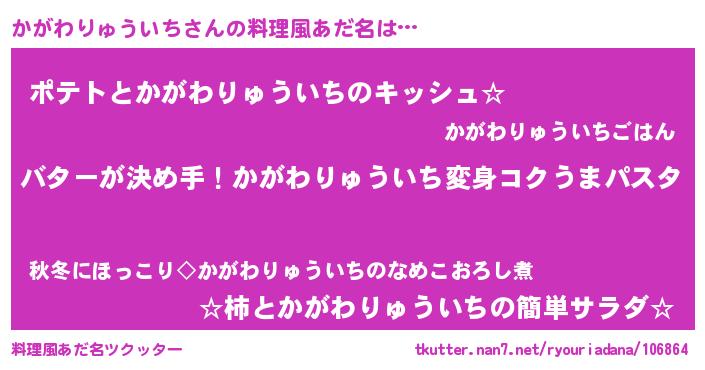 | ポケモン風あだ名 | 『カックウザ』『ヒカガワリュウイチ』 |