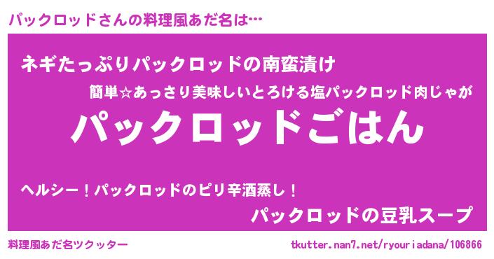 | 男性向けラノベタイトル風あだ名 | 『パックロッドスレイヤー』 |