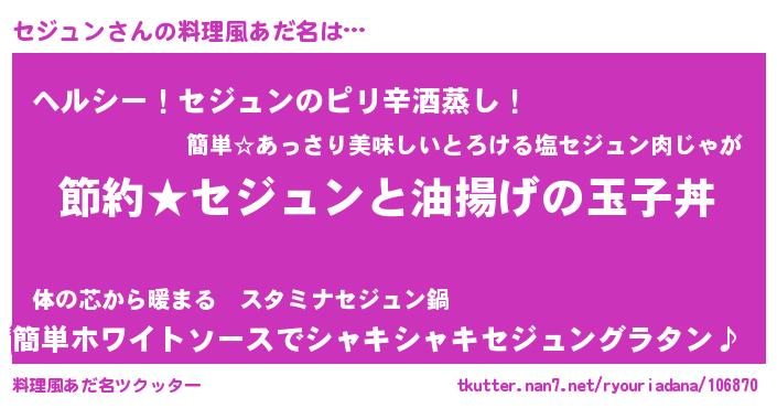 | ヒーロー風カッコイイあだ名 | 『スーパーセジュン』『最強戦士セジュン』 |