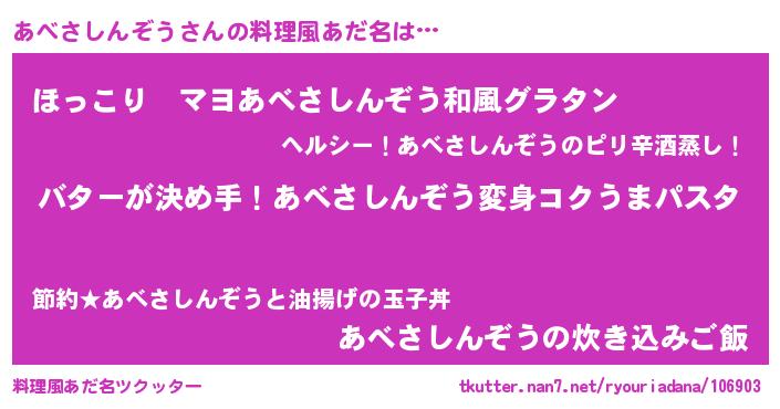 | 意味不明あだ名 | 『眠気覚ましガムあべさしんぞう味』 |