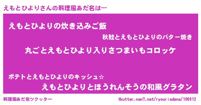 | ヘコむあだ名 | 『えもとひより(笑)』『えもぷりん』 |