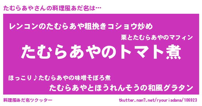 | 女子向けラノベタイトル風あだ名 | 『たむらあや夫妻のなれそめ』 |