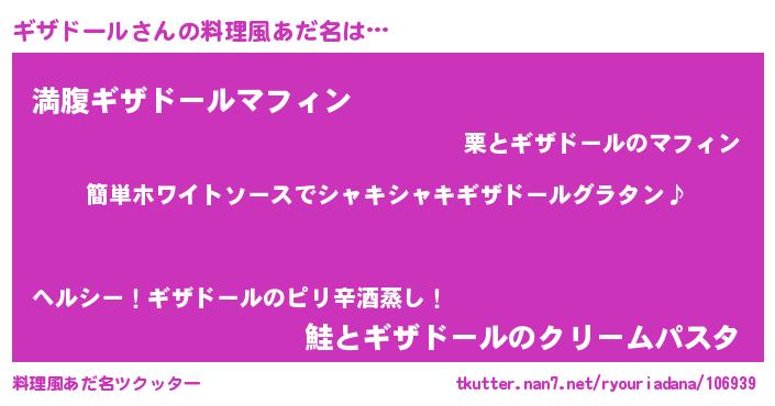 | 男性向けラノベタイトル風あだ名 | 『ギザドールの嫁は女の子じゃないと思った?』 |