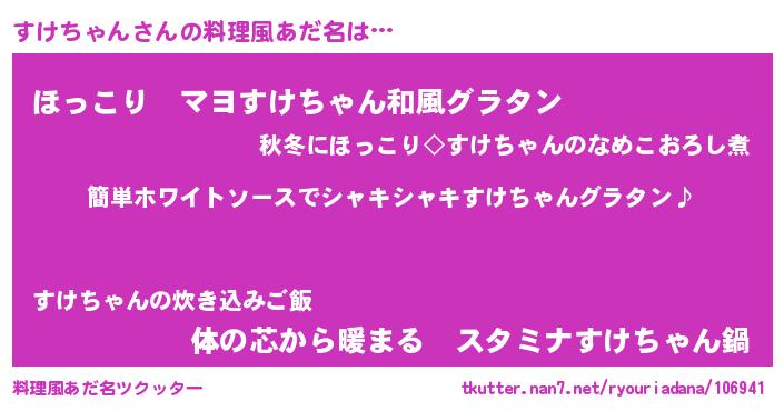 | 男性向けラノベタイトル風あだ名 | 『すけちゃんの嫁は女の子じゃないと思った?』 |
