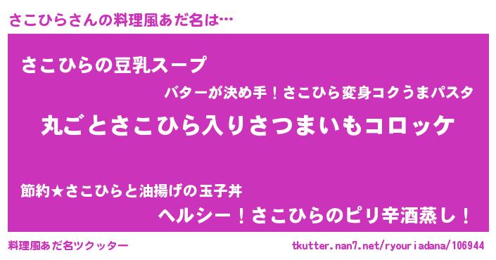 | 男性向けラノベタイトル風あだ名 | 『この素晴らしい世界にさこひらを!』 |