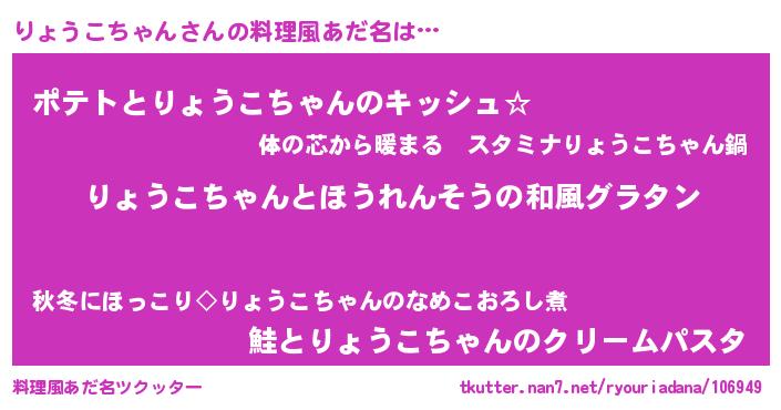 | 女子向けラノベタイトル風あだ名 | 『りょうこちゃんの玉の輿計画!』 |