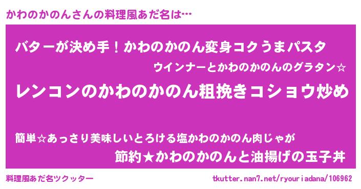 | 意味不明あだ名 | 『自称かわのかのん』 |