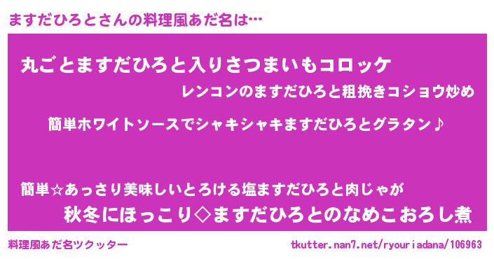 | 男性向けラノベタイトル風あだ名 | 『ますだひろとの嫁は女の子じゃないと思った?』 |