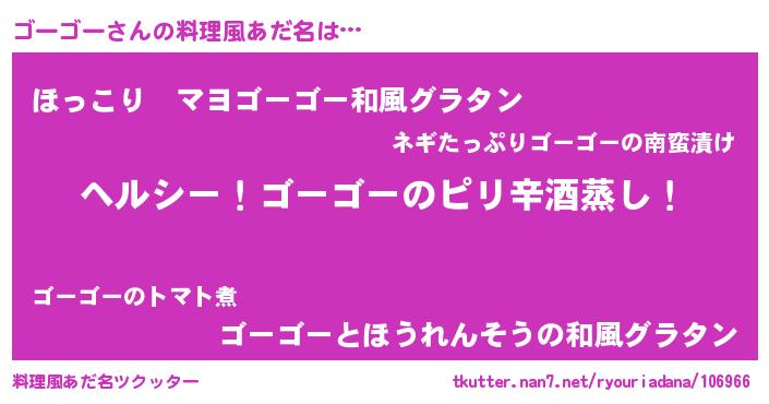 | ヘコむあだ名 | 『ゴーにゅー』『酢こんぶ』『ゴーを』 |