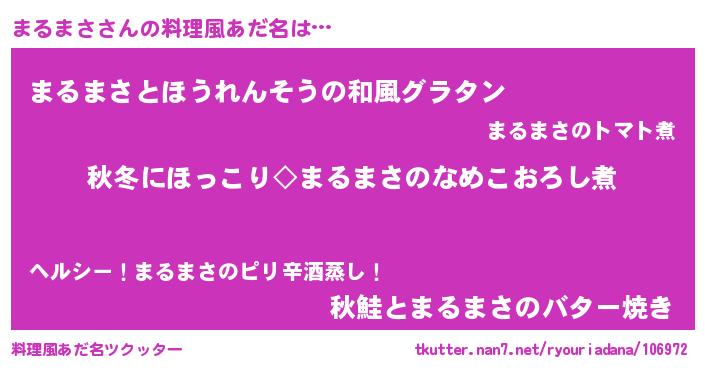 | 男性向けラノベタイトル風あだ名 | 『まるまさに滅ぼされるだけの簡単なお仕事です』 |