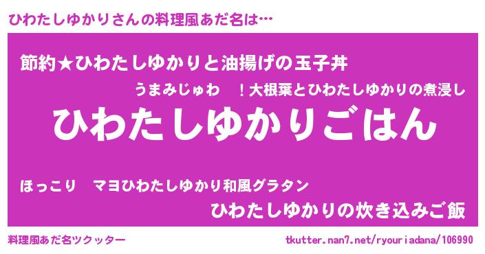| 恥ずかしいあだ名 | 『プリティーひわたしゆかり』『ひわちん』 |