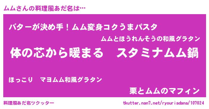 | 女子向けラノベタイトル風あだ名 | 『ムムの雑貨屋さん』『ムム恋絵巻』 |