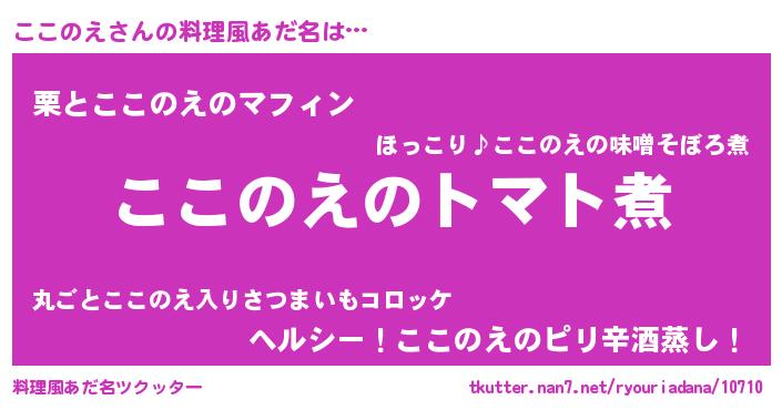 | 女子向けラノベタイトル風あだ名 | 『ここのえ夫妻のなれそめ』 |